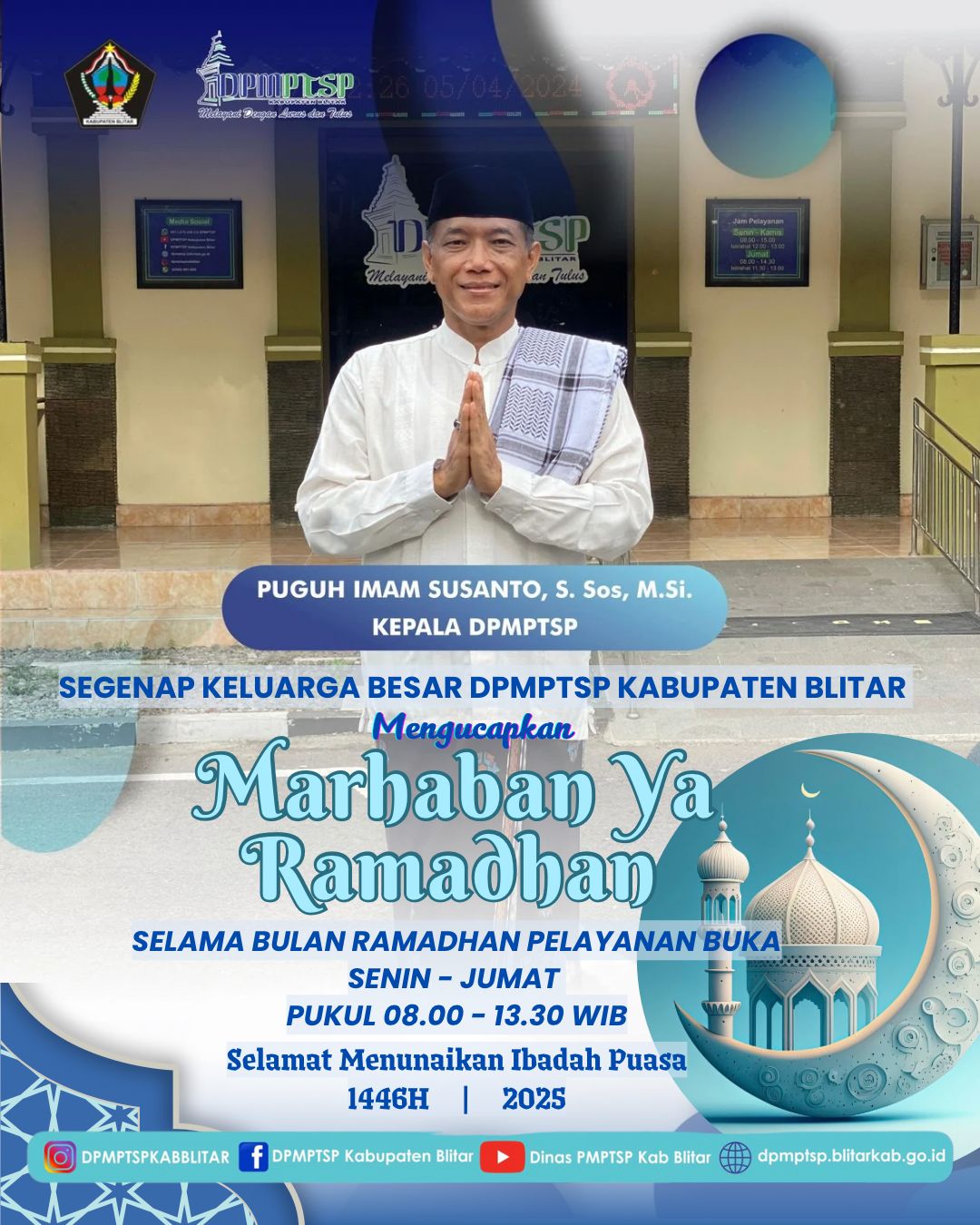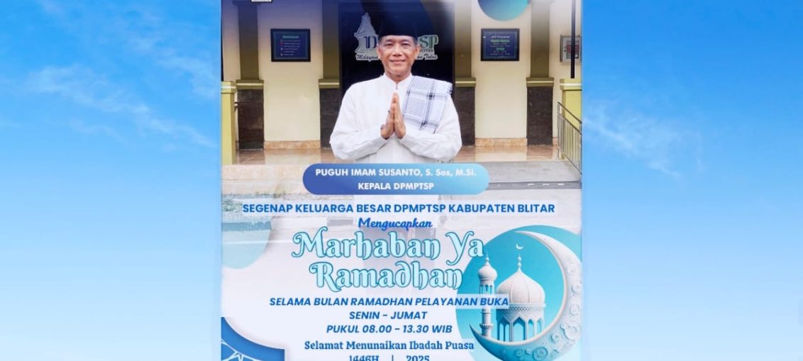 Segenap Keluarga besar Dinas Penanaman Modal dan Pelayanan Terpadu Satu Pintu Kabupaten Blitar mengucapkan Marhaban Ya Ramadhan