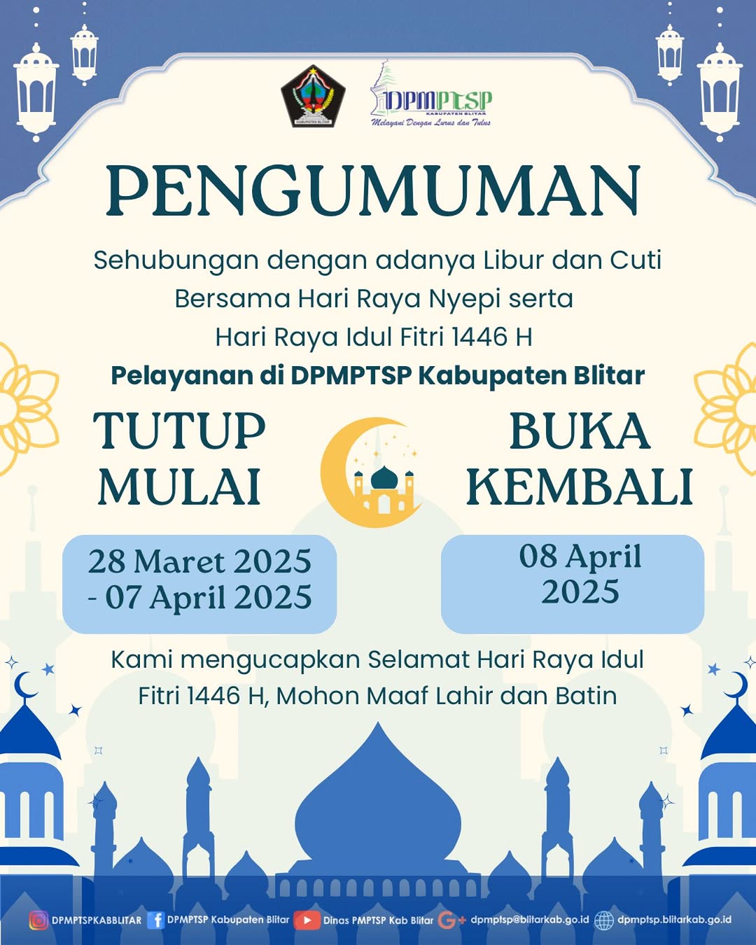 Sehubungan dengan Hari Libur Nasional dan Cuti Bersama Hari Raya Nyepi serta Hari Raya Idul Fitri 1446 H