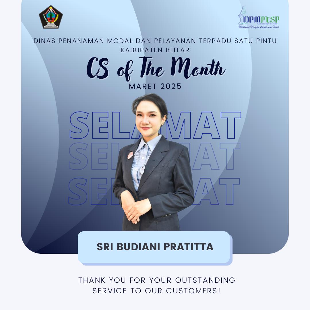 Selamat dan sukses kak Tita atas penghargaan sebagai CS Of The Month DPMPTSP Kabupaten Blitar, periode Maret 2025.