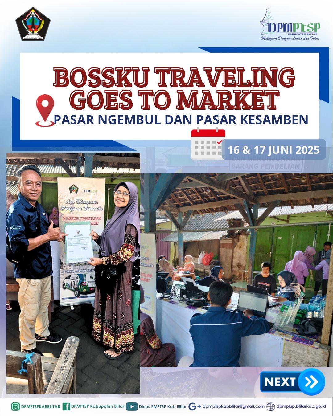 BOSSKU Traveling Goes To Market bentuk efektif untuk meningkatkan pemerataan dan penyebaran perizinan berusaha di Kabupaten Blitar.