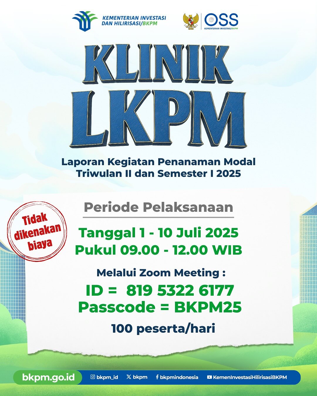 #Invesmin mengajak pelaku usaha menyampaikan Laporan Kegiatan Penanaman Modal (LKPM) periode Triwulan II (April–Juni) dan Semester I (Januari–Juni) tahun 2025.