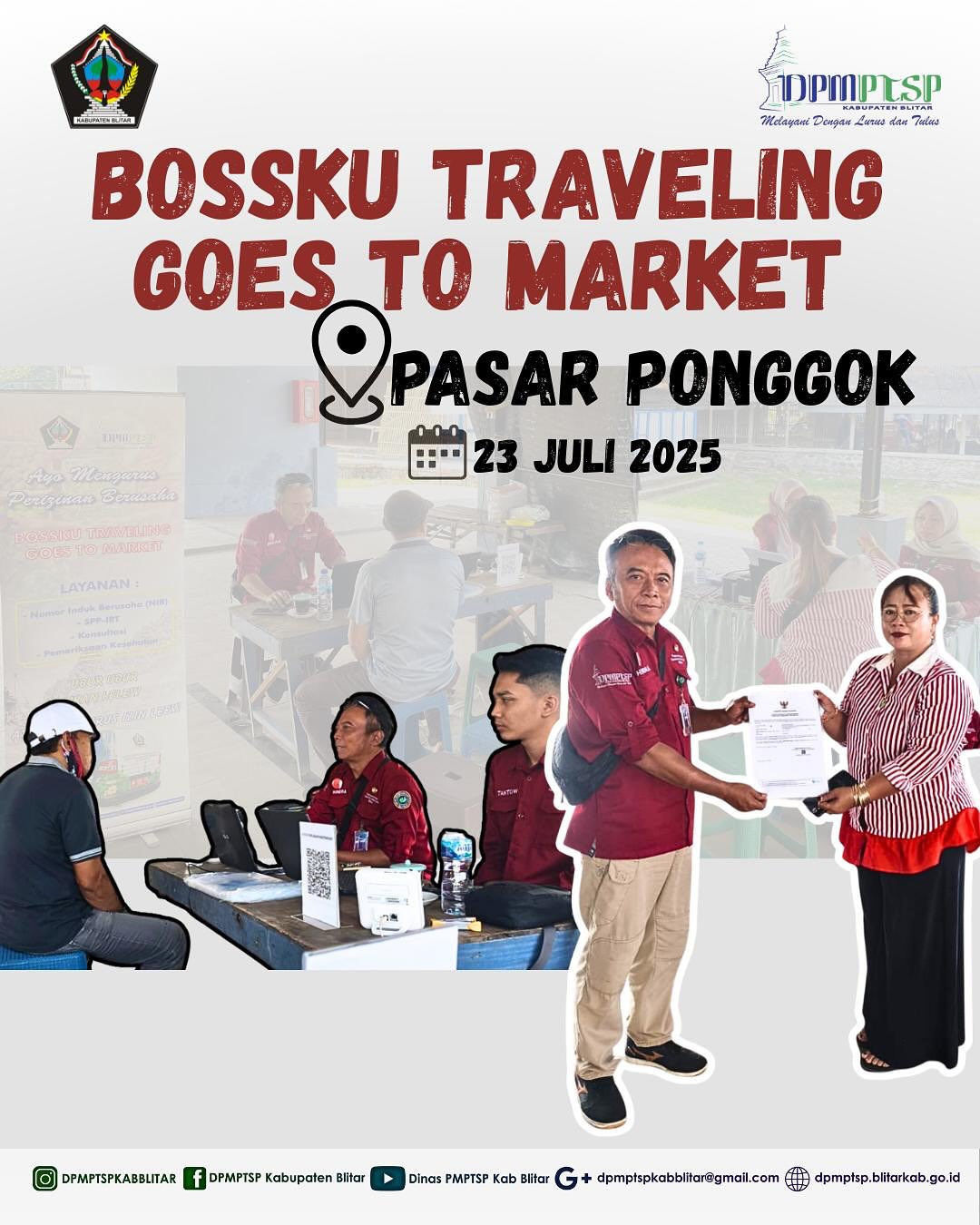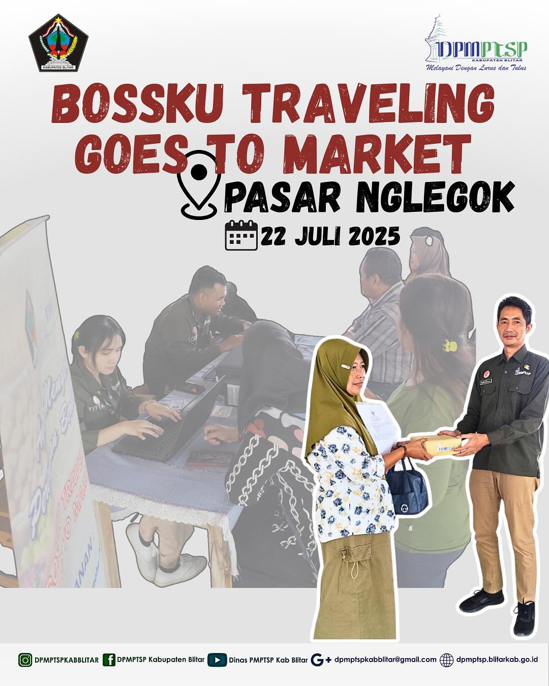 DPMPTSP Kab.Blitar melaksanakan kegiatan BOSSKU Traveling Goes To Market yang berlokasi di Pasar Nglegok (22/7) dan Pasar Nglegok (23/7)