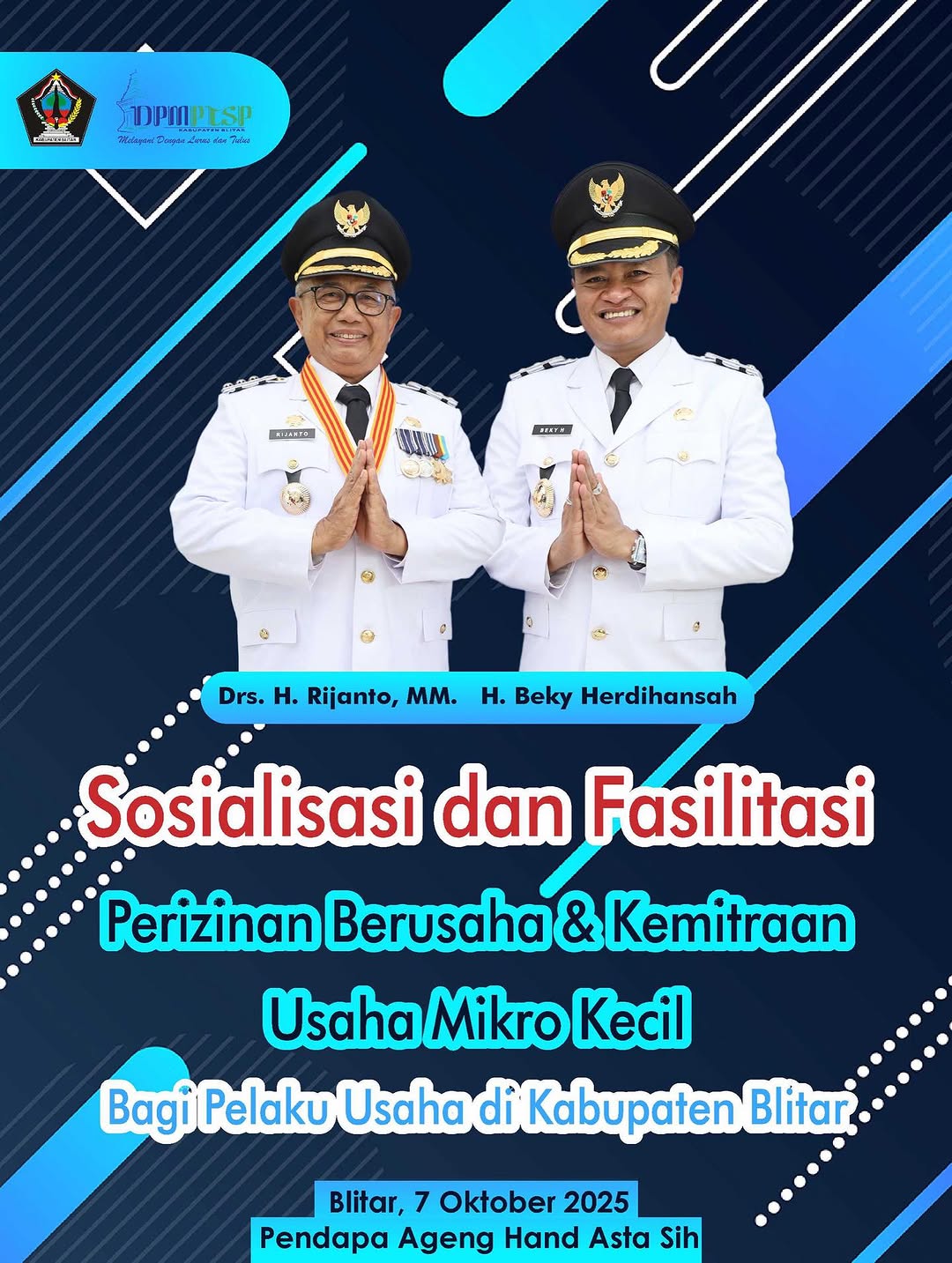 DPMPTSP Kabupaten Blitar juga akan menyelenggarakan Sosialisasi dan Fasilitasi Perizinan Berusaha dan Kemitraan Usaha Mikro Kecil Bagi Pelaku Usaha di Kabupaten Blitar, pada :