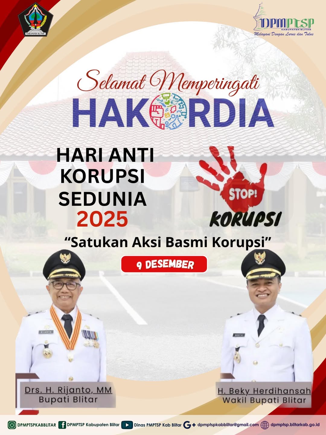 Hari Anti Korupsi Sedunia 2025 Berita Berita Foto by adminwebsite - December 9, 2025December 18, 20250 Hallo #bOSSteam Selamat Memperingati Hari Anti Korupsi Sedunia 2025 DPMPTSP Kabupaten Blitar berkomitmen Tolak Gratifikasi, Suap dan Pungli “Satukan Aksi Basmi Korupsi” #investasitumbuhindonesiamaju #investasiuntukkita #melayanidenganlurusdantulus